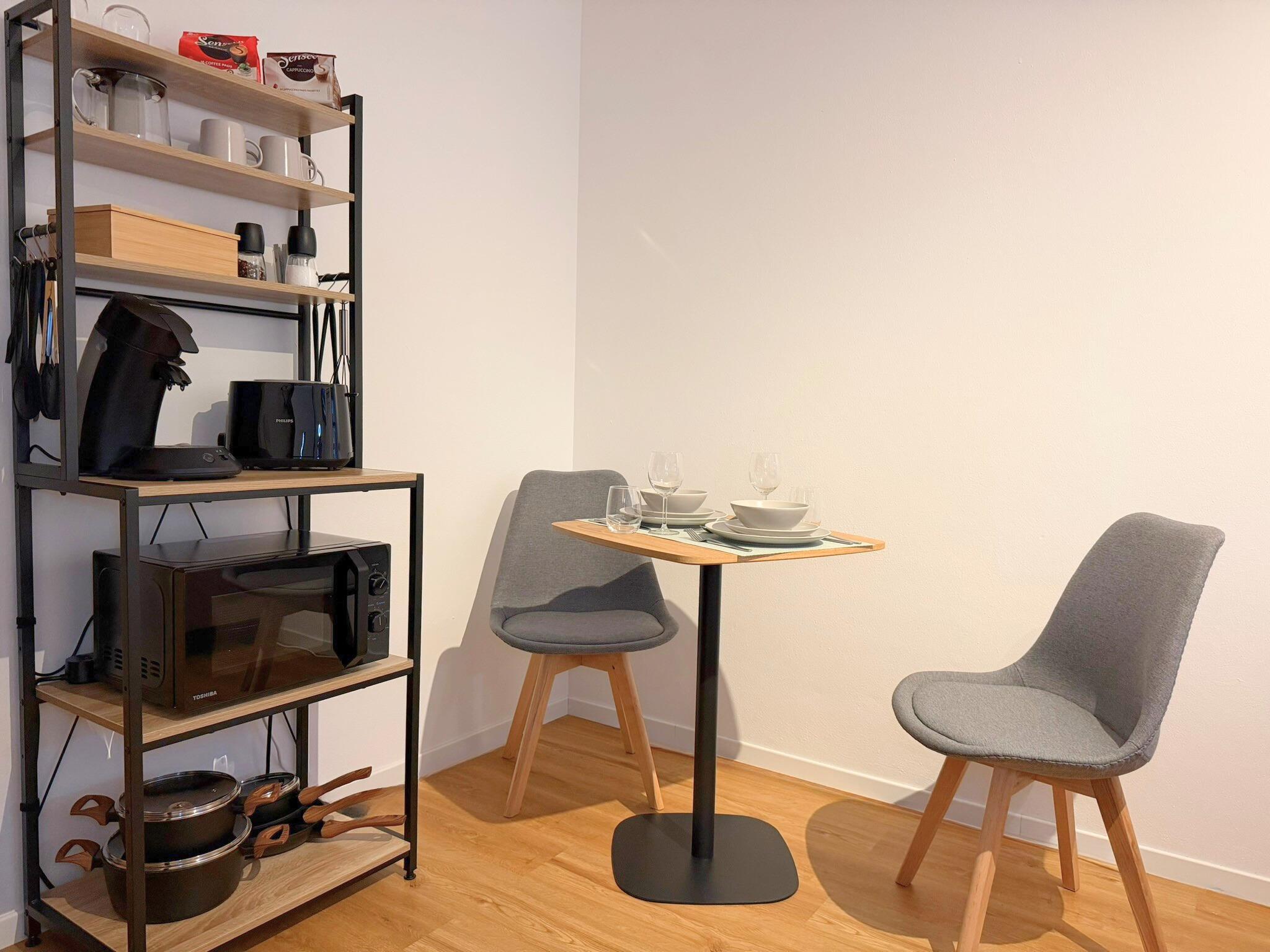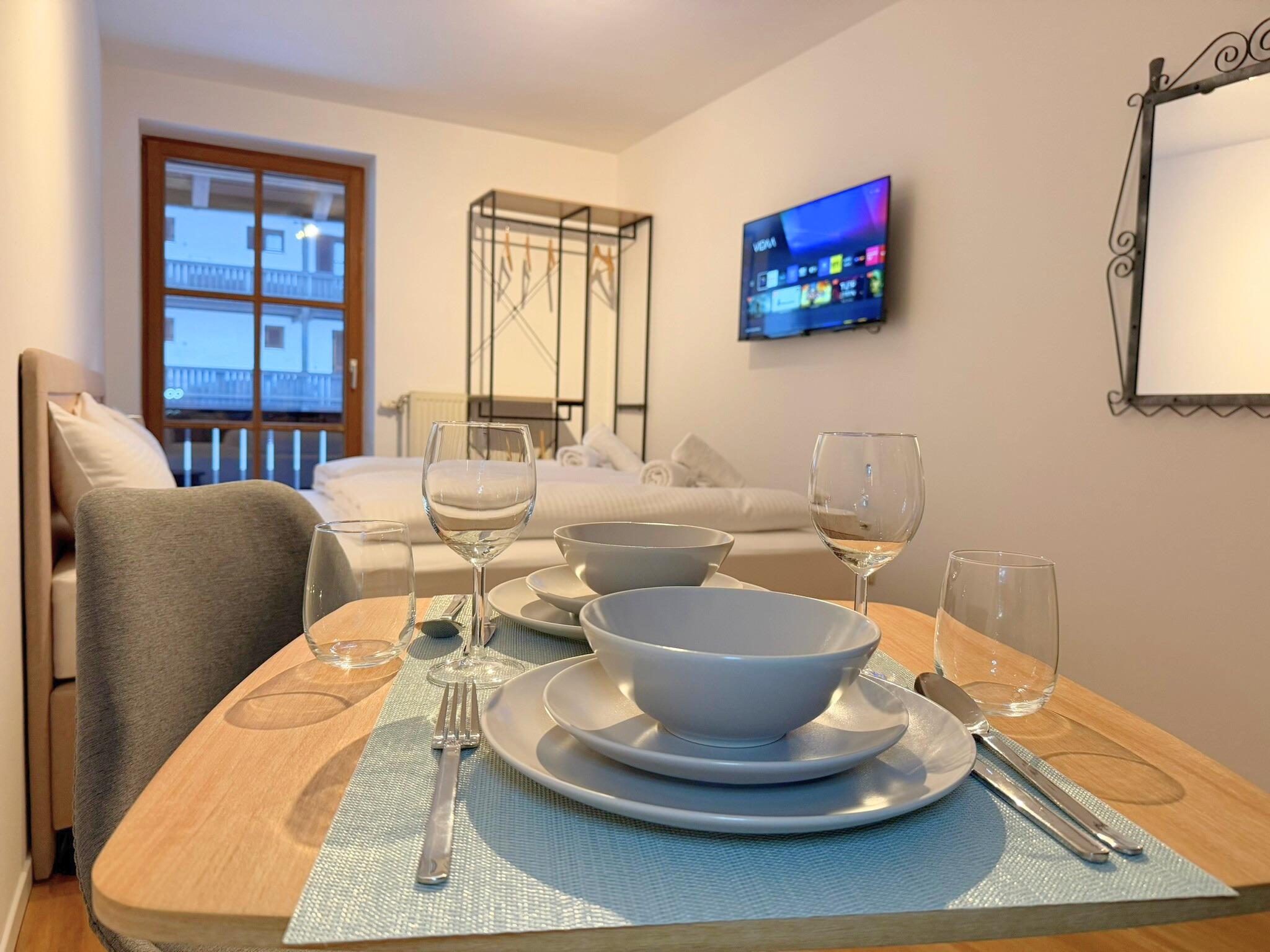 Dusche, WC, Bad, Balkon, TV, Küchenzeile, Sitzgruppe, Nichtraucher, Wäschetrockner, Bettwäsche inkl., Handtücher inkl., Kochnische, Geschirr vorhanden, Balkon am Zimmer, Mikrowelle,