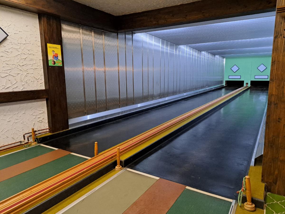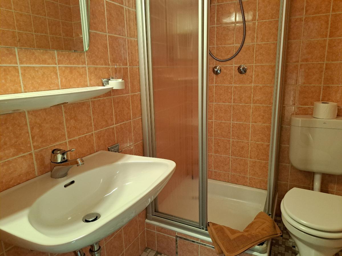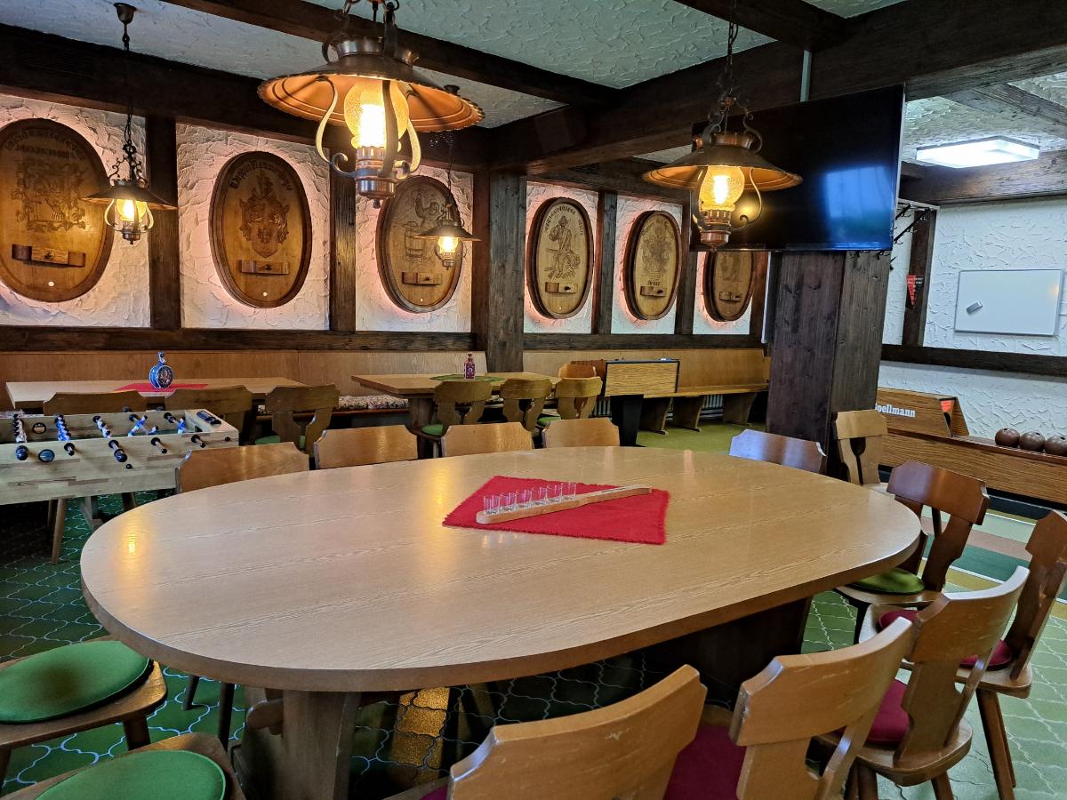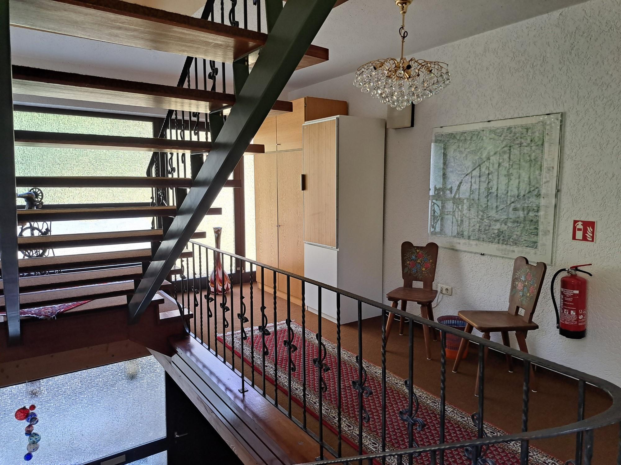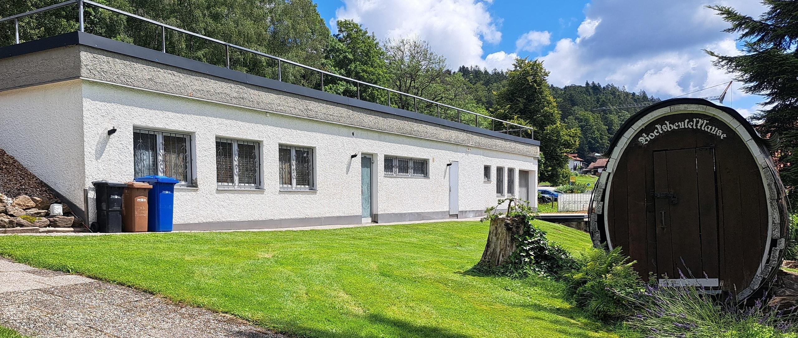 Unser Objekt ist eine ehemals familiengeführte Pension mit Einzelzimmervermietung. Es wurde über die Jahre immer wieder restauriert, saniert und verschönert. Geblieben sind teilweise Badkacheln im Maß von 15 x 15 und zwei Wasserhähne in der Duschkabine zum temperieren des Duschwassers. Wer damit umgehen kann sollte unbedingt weiterlesen. Geeignet für Wandergruppen, Vereine oder Familientreffen bietet unser Gästehaus 10 Doppelzimmer für bis zu 21 Personen. Alle Zimmer verfügen über ein eigenes Bad mit Dusche und WC und befinden sich im ersten Obergeschoss des Hauses. Bei sieben Zimmern ist außerdem ein Balkon mit Aussicht ins Tal vorhanden.Für größere Gruppen befinden sich weitere vier Zimmer im Dachgeschoss, sodass insgesamt bis zu 29 Personen Platz finden. Diese Zimmer sind ebenfalls mit eigener Dusche und WC. In allen angebotenen Zimmern steht Ihnen unser WLAN kostenlos zur Verfügung. Auf den Wohnetagen steht Ihnen außerdem je ein großer Kühlschrank zur Verfügung.Die Küche zur Selbstversorgung befindet sich im Nebengebäude direkt neben dem Gästehaus. Sie verfügt über einen Elektroherd, zwei Kaffeemaschinen, Mikrowelle, Wasserkocher, Toaster, Kühl- und Gefrierschrank, sowie über eine zusätzliche Kühltheke für Getränke. An die Küche anschließend befindet sich ein großer Gemeinschaftsraum. Zusätzlich bieten wir eine Kegelbahn, eine Tischtennisplatte, einen Tischkicker, einen großen Fernseher, eine Dartscheibe, sowie diverse Familienspiele.Unsere großzügige Sonnenterasse mit Blick in die unverbaute Natur lädt Sie zum Entspannen ein und bietet Sitzgelegenheiten sowie zwei große Sonnenschirme. Unterhalb des Gästehauses befindet sich zusätzlich eine große Liegewiese mit Liegestühlen und einem kleinen Kinderspielplatz.Für gesellige Grillabende stellen wir Ihnen außerdem einen Holzkohle- bzw. Gasgrill zur Verfügung.