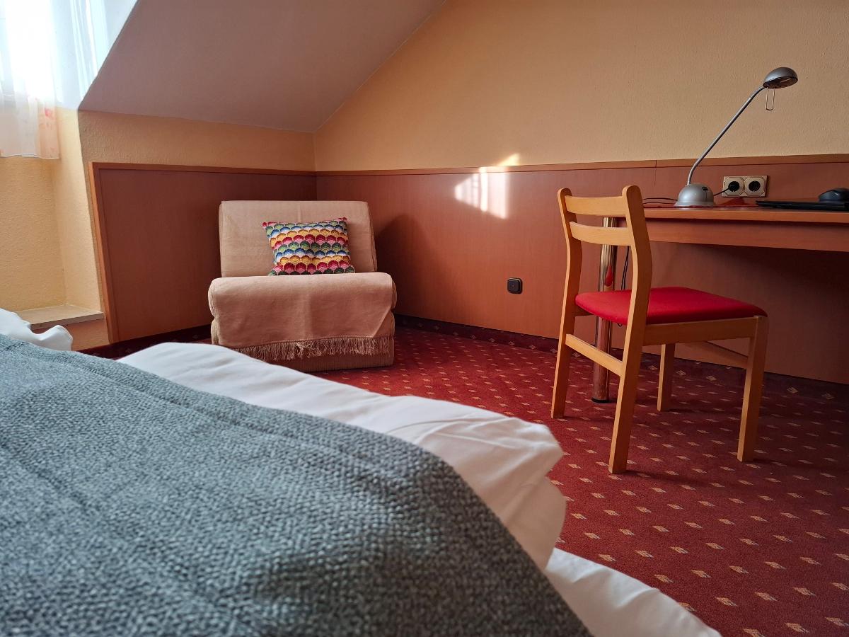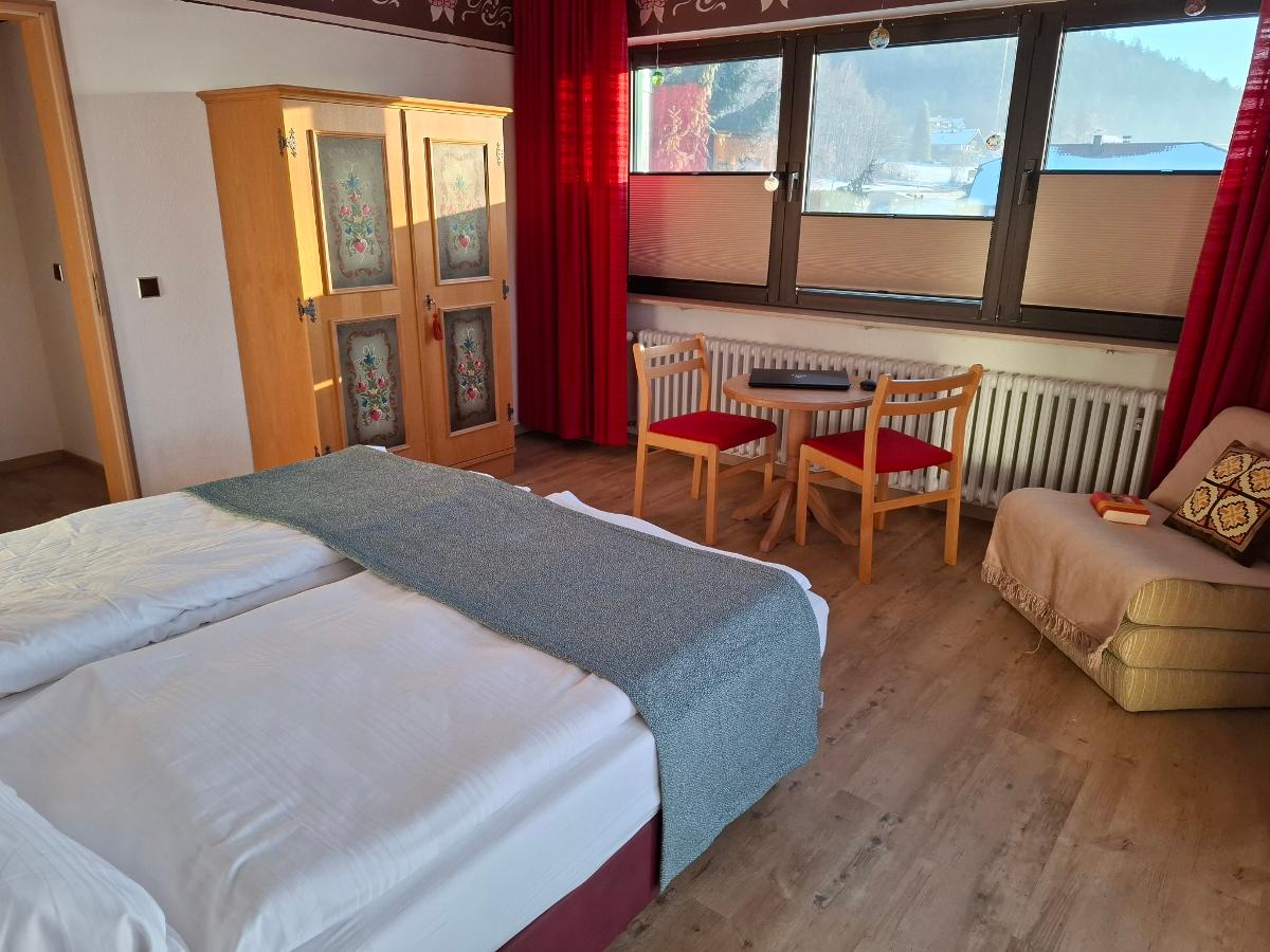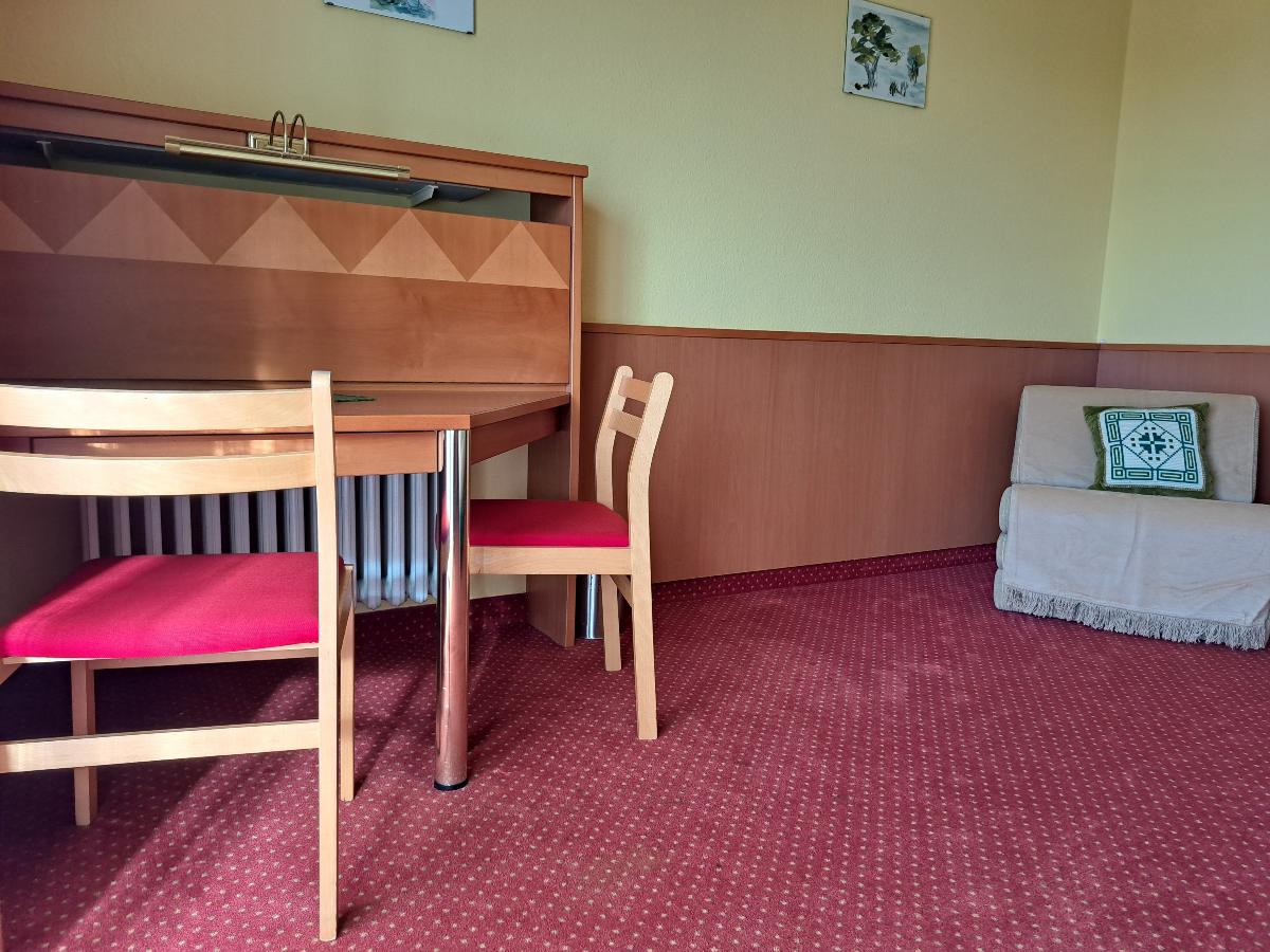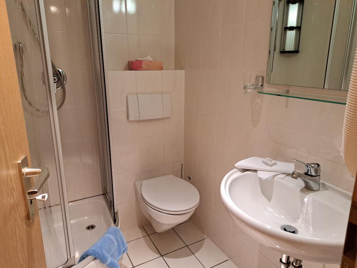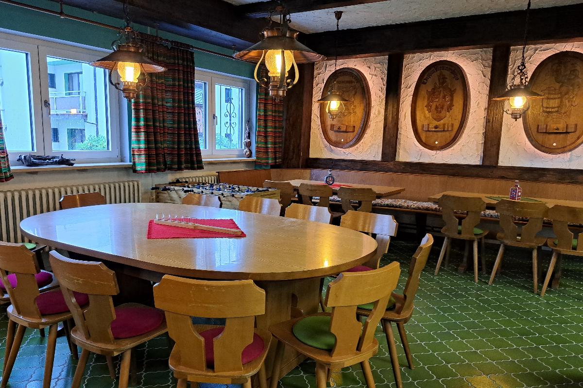 Unser Objekt ist eine ehemals familiengeführte Pension mit Einzelzimmervermietung. Es wurde über die Jahre immer wieder restauriert, saniert und verschönert. Geblieben sind teilweise Badkacheln im Maß von 15 x 15 und zwei Wasserhähne in der Duschkabine zum temperieren des Duschwassers. Wer damit umgehen kann sollte unbedingt weiterlesen. Geeignet für Wandergruppen, Vereine oder Familientreffen bietet unser Gästehaus 10 Doppelzimmer für bis zu 21 Personen. Alle Zimmer verfügen über ein eigenes Bad mit Dusche und WC und befinden sich im ersten Obergeschoss des Hauses. Bei sieben Zimmern ist außerdem ein Balkon mit Aussicht ins Tal vorhanden.Für größere Gruppen befinden sich weitere vier Zimmer im Dachgeschoss, sodass insgesamt bis zu 29 Personen Platz finden. Diese Zimmer sind ebenfalls mit eigener Dusche und WC. In allen angebotenen Zimmern steht Ihnen unser WLAN kostenlos zur Verfügung. Auf den Wohnetagen steht Ihnen außerdem je ein großer Kühlschrank zur Verfügung.Die Küche zur Selbstversorgung befindet sich im Nebengebäude direkt neben dem Gästehaus. Sie verfügt über einen Elektroherd, zwei Kaffeemaschinen, Mikrowelle, Wasserkocher, Toaster, Kühl- und Gefrierschrank, sowie über eine zusätzliche Kühltheke für Getränke. An die Küche anschließend befindet sich ein großer Gemeinschaftsraum. Zusätzlich bieten wir eine Kegelbahn, eine Tischtennisplatte, einen Tischkicker, einen großen Fernseher, eine Dartscheibe, sowie diverse Familienspiele.Unsere großzügige Sonnenterasse mit Blick in die unverbaute Natur lädt Sie zum Entspannen ein und bietet Sitzgelegenheiten sowie zwei große Sonnenschirme. Unterhalb des Gästehauses befindet sich zusätzlich eine große Liegewiese mit Liegestühlen und einem kleinen Kinderspielplatz.Für gesellige Grillabende stellen wir Ihnen außerdem einen Holzkohle- bzw. Gasgrill zur Verfügung.
