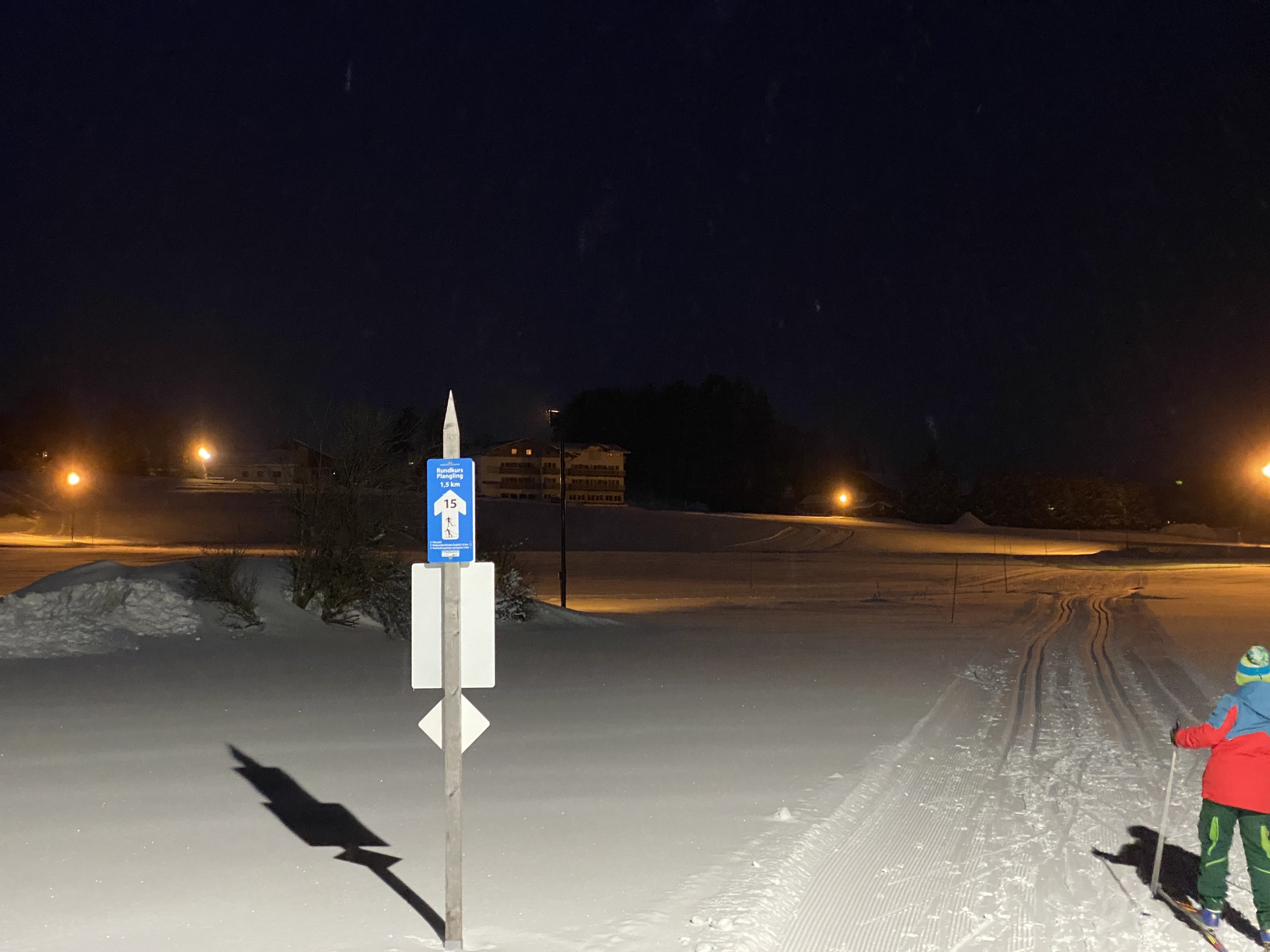 Beleuchtet ist die Loipe im Montag, Mittwoch und Freitag von 17:00 - 21 Uhr.
