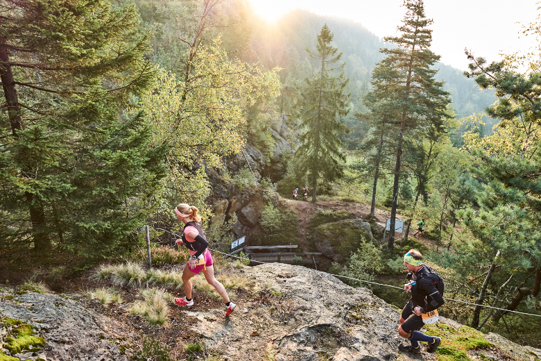 Nach dem Durchlauf läuft es sich rasant bergab und den Flusswanderweg entlang – ein Genusstrail. Auf Höhe Ludwigsthal geht es hinauf über die sogenannte Ableg nach Rabenstein und weiter zum 965 m hohen Hennenkobel. Im Anschluss kommt ein flowiger Downhill ins Brandtner Tal.Entlang des Rotbaches geht es bis zum Bodenmaiser Ortsteil Böhmhof. Nach Umrunden des Brandtner Riegels geht es hoch zum Bretterschachten. Dort Treffen wir wieder auf den Auerhahntrail und folgen diesen um den Hochzell-Berg durch das Rissloch auf das Mittagsplatz. Von hier geht es über die Seehänge zum Großen Arbersee und weiter bis zum Ziel ins Skistadion.