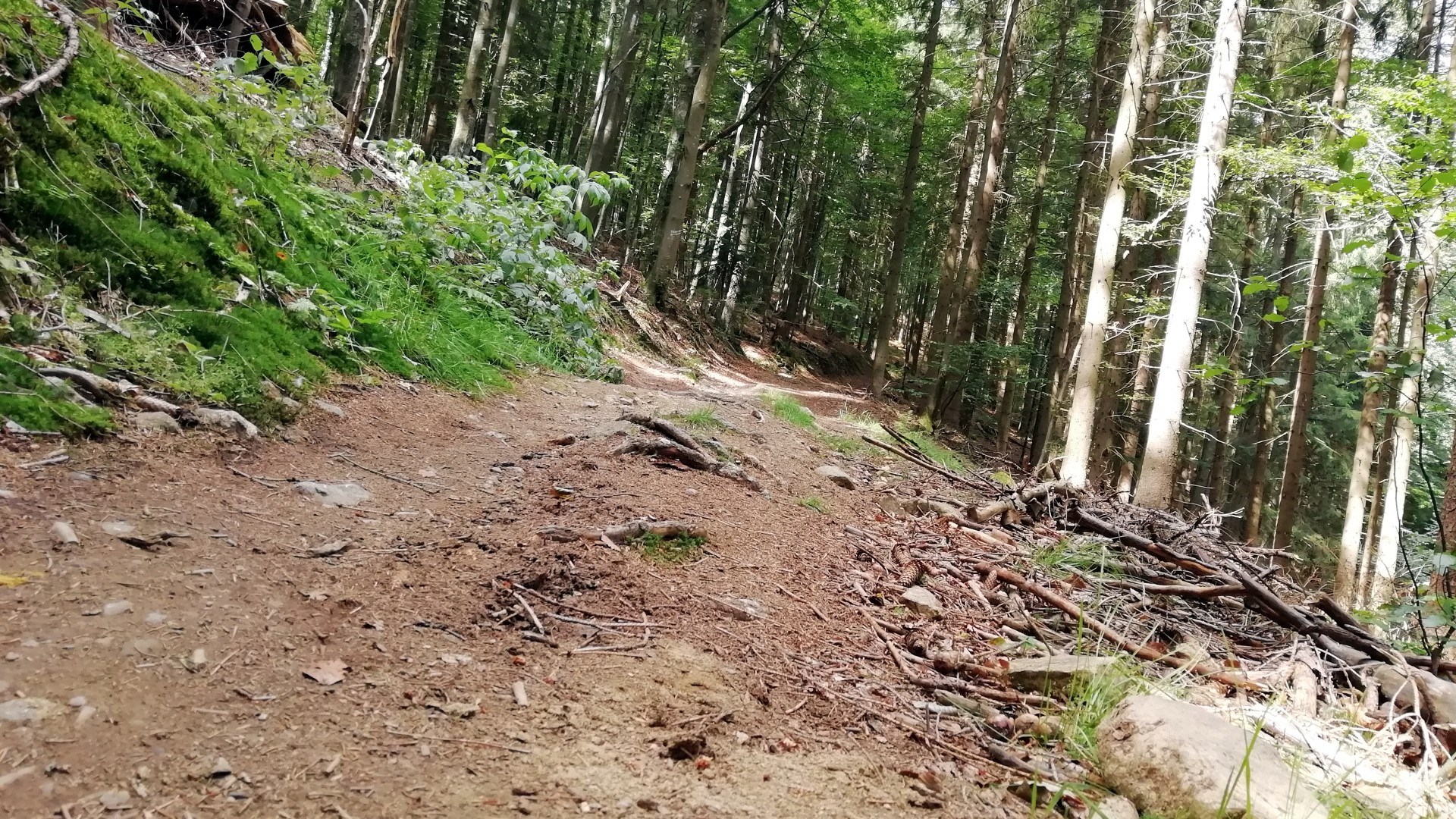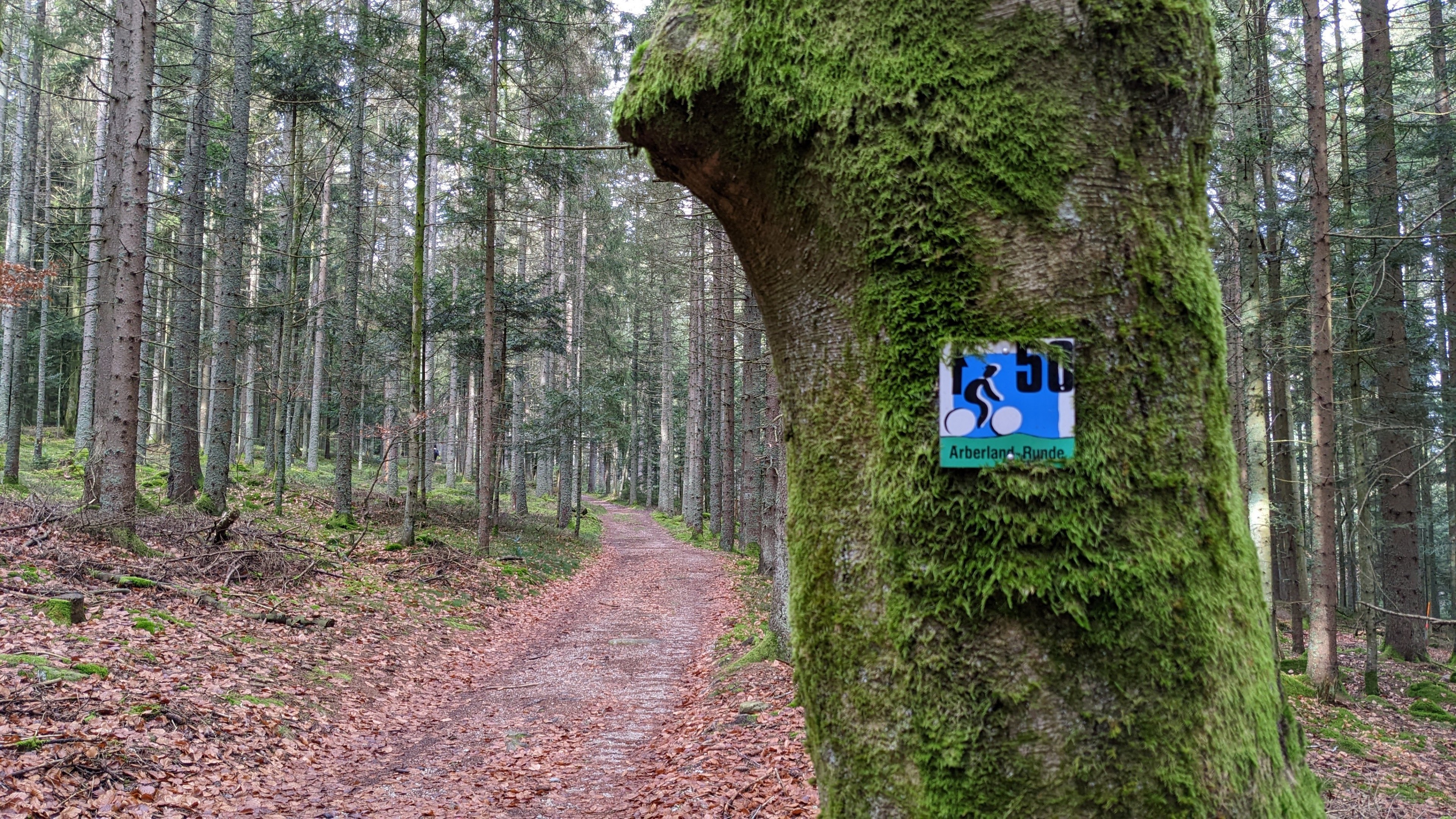 Die Forststraße wechselt dabei in einen fordernden Singletrail, der sowohl bergauf als auch bergab geht. Am Wagensonnriegel öffnet sich der Blick über Rinchnach und den