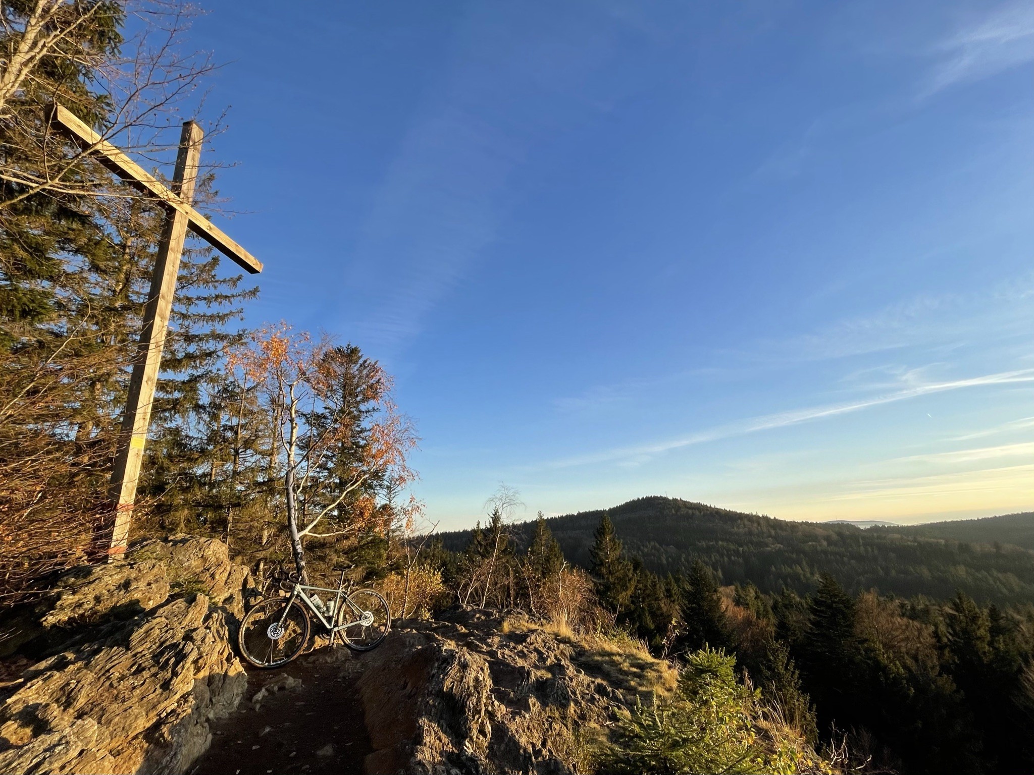 Die Forststraße wechselt dabei in einen fordernden Singletrail, der sowohl bergauf als auch bergab geht. Am Wagensonnriegel öffnet sich der Blick über Rinchnach und den