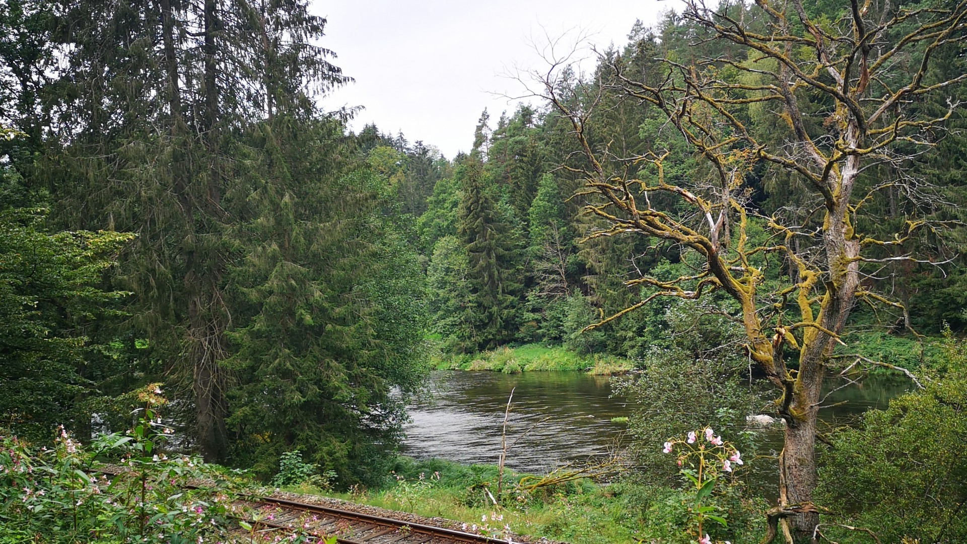 der Regenbrücke auf den Flusswanderweg abbiegen