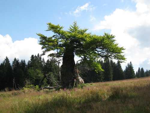 Die Nationalparkphilosophie “Natur Natur sein lassen” ermöglicht eine natürliche Waldentwicklung. Dazu gehören auch absterbende Bäume. Bitte achten Sie besonders bei stärkerem Wind auf die Gefahr herabstürzenden Totholzes.