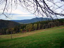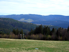 Der Blick zum Großen Arber ist überwältigend. Wer einen Abstecher zum Gipfel unternehmen möchte, wählt den rechten Weg. Der Weg nach links, vorbei am Gasthaus Sonnenfels, führt nach gut 1 km Abstieg wieder zum Ausgangspunkt in Brennes zurück.