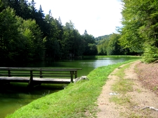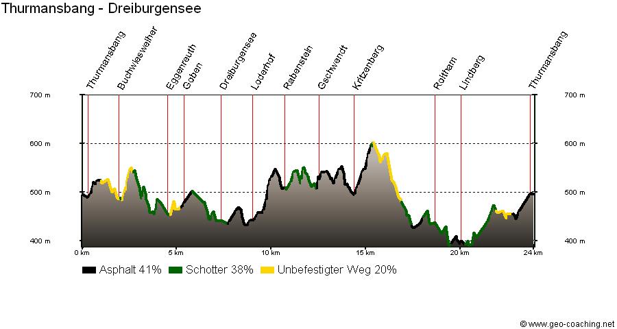 Rasante Abfahrten knackige Anstiege Wurzelwege Sandstraßen See Aussichtsturm Museum Bayerwalddörfer alte Mühlen! Obwohl nur eine Länge von knapp 24 km, so ist diese Tour doch ein vollkommener Leckerbissen für alle Mountainbikefreaks. Sie bietet alles, was das Herz eines Bergradlers höher schlagen lässt! Bereits kurz nach dem Ortsausgang von Thurmansbang fordert ein Waldabfahrt mit rasanten Kurven unser technisches Geschick. Im Tal angekommen, werden wir mit dem idyllischen Buchwiesweiher belohnt. Gleich danach brauchen wir unser ganzes Geschick um den Anstieg über Wurzeln und Steine zu meistern. Die folgende Abfahrt auf einer Sandstraße ist eigentlich leicht zu bewältigen, wobei die zwei scharfen Kurven uns wiederum einen Nervenkitzel bieten. Als nächste Tour-Attraktion erwartet uns der Dreiburgensee, dessen Ufer wir folgen, und das Museumsdorf Bayerischer Wald. Der Mühlhiasl war eigentlich ein Prophet des Bayerischen Waldes, hier ziert sein Namenszug allerdings das Eingangstor zur Museumsgaststätte und wirkt zugleich urig und einladend. Anschließend sind wir ausschließlich auf Asphaltstraßen unterwegs und könnten eigentlich das lockere dahinradeln genießen, wenn da nicht immer diese wadlbeissenden Anstiege wären. Wie schon gesagt: Diese Tour bietet alles für Mountainbiker! Den wahrhaftigen Höhepunkt erreichen wir beim Aussichtsturm am Ochsenstiegl. Die Holzkonsturktion bietet auf der Plattform einen weiten Rundblick über die Bayerwaldberge und die erklärenden Bildbeschreibungen erleichtern uns die Suche nach den einzelnen Ortschaften im Waldmeer sehr. Wie soll es anders sein: Die Abfahrt wird wiederum kein Kinderspiel. Über Stock und Stein genauso anspruchsvoll wie es die Biker eigentlich wollen, geht es der nächsten Ortschaft zu. Die knapp 600 Meter auf der asphaltierten Verkehrsstraße bieten hierbei eine willkommene Entspannungsphase. In Roitham ist es mit der Ruhe schon wieder vorbei, denn auf Feld- und Waldwegen radeln wir bergauf und bergab und steuern eine alte Mühle an. Das besondere daran ist: Obwohl schon mehrere Hundert Jahre alt, ist dieses Bauwerk noch immer voll funktionsfähig und wird an manchen, besonderen (Museums-)Tagen noch in Betrieb genommen und wir dürfen mit unseren Radeln in der Mitte durch. Das ist der Wunsch und Wille der Mühlenbesitzer! Die abschließende letzte Steigung zum Ausgangspunkt am Tourismusbüro in Thurmansbang ist der würdige Abschluss dieser außergewöhnlich schönen, abwechslungsreichen und interessanten Radltour. Prädikat: besonders empfehlenswert!