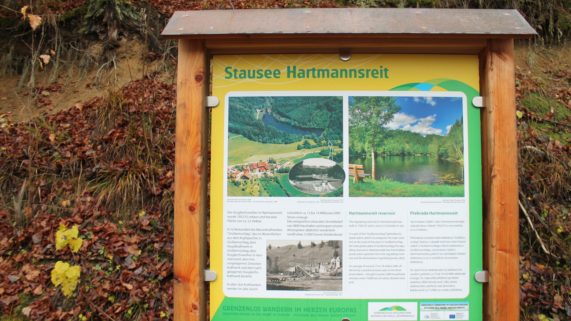 Wasserrauschen und spiegelnde Wasserflächen begleiten den Wanderweg auf weiten Strecken des Rundwanderweges 5. Nach Großarmschlag lohnt ein Abstecher (Wanderrunde Nr. 6), der zum Großarmschlager Stausee und wieder zurück führt. Weiter geht es an der Großen Ohe, die ihren Weg vom Großen Rachel hinab bis in die Ilz nimmt und sprudelnd den Weg bis zum Hartmansreiter Stausee säumt. Nun geht es stetig bergan über Grafenhütt in Richtung Hoher Sachsen (752 m) und über die Dörfer Voitschlag und Grüb zurück nach Großarmschlag. Über wenig befahrene kleine Dorfstraßen durch Schildertschlag, Judenhof und Langfeld kann die Runde beliebig abgekürzt werden (nicht markiert). Markierungszeichen: weiße 5 auf rotem Kreis