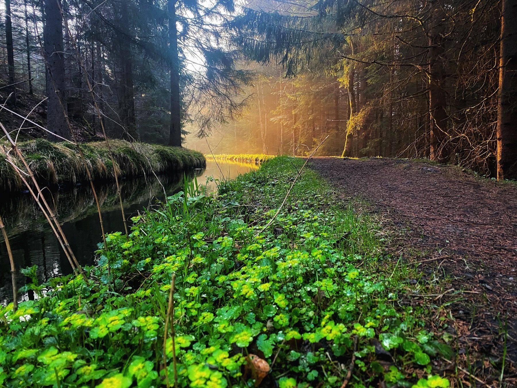 Gleich nach der Brücke geht es rechts ab und einem Waldweg folgend immer am Ufer des Großen Regens entlang.