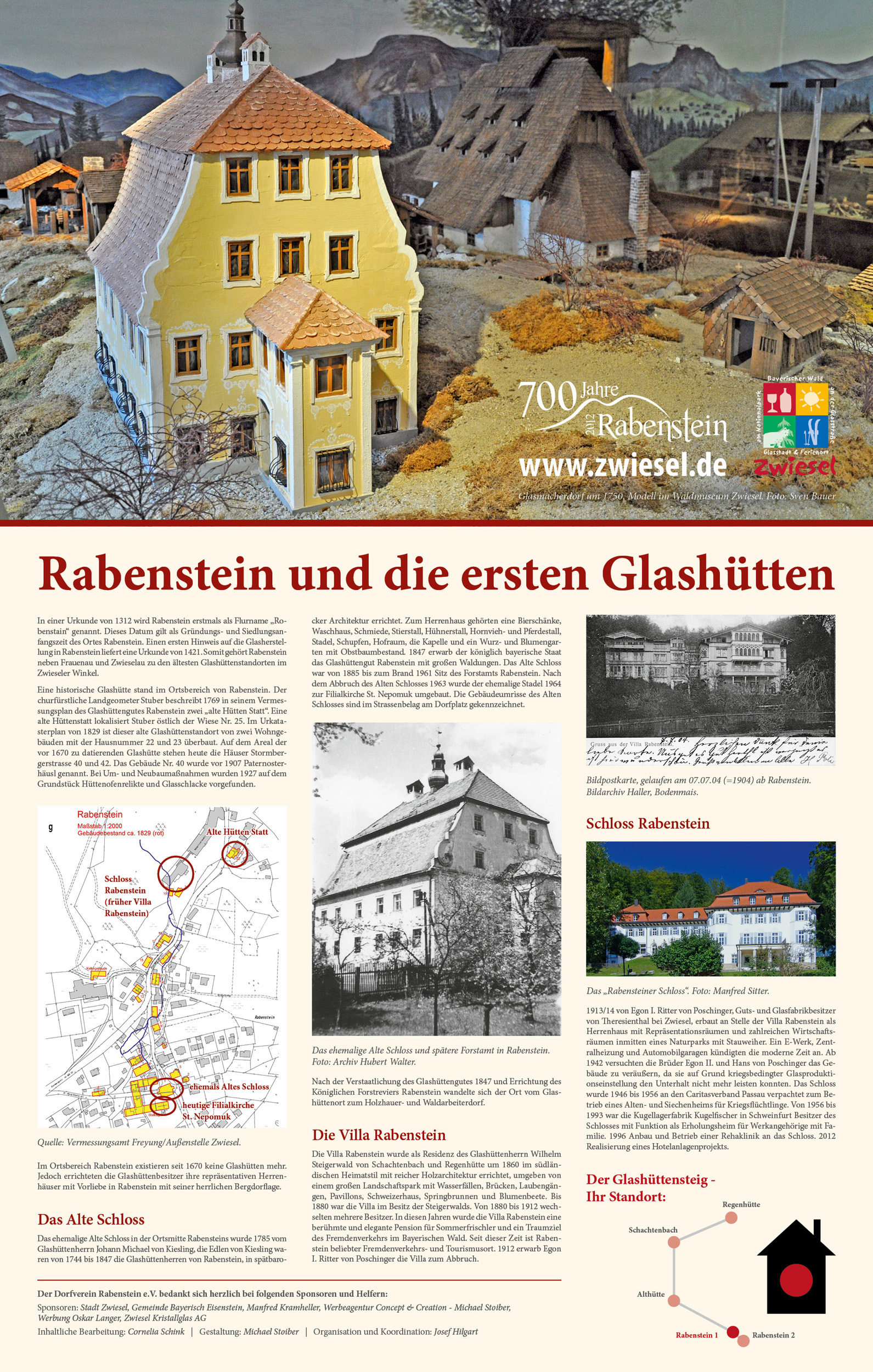 Verlauf:Ab Schloss Rabenstein führt der Weg zu mehreren ehemaligen Glashüttenstandorten (mit Infotafeln).