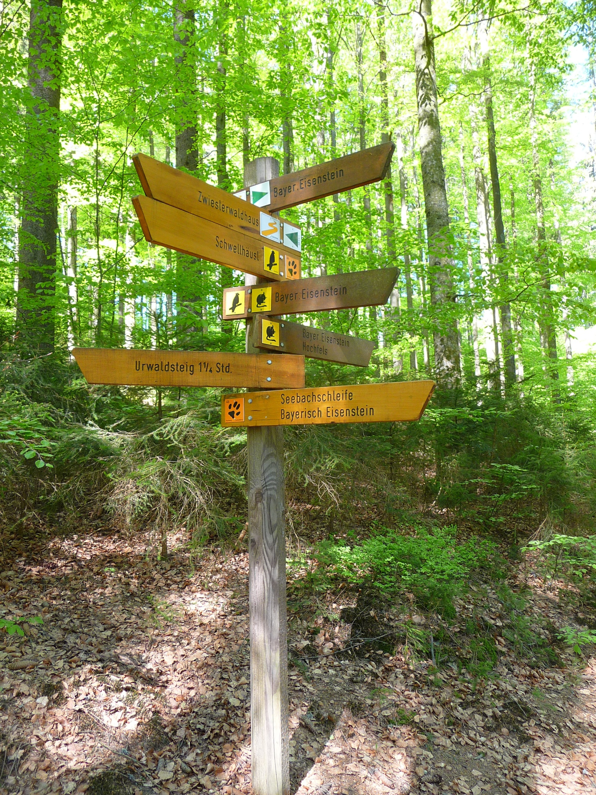 Ohne nennenswerte Höhenunterschiede geht es weiter durch das Urwaldgebiet Hans-Watzlik-Hain zum Zwieselerwaldhaus und zum Wildniscamp am Falkenstein.