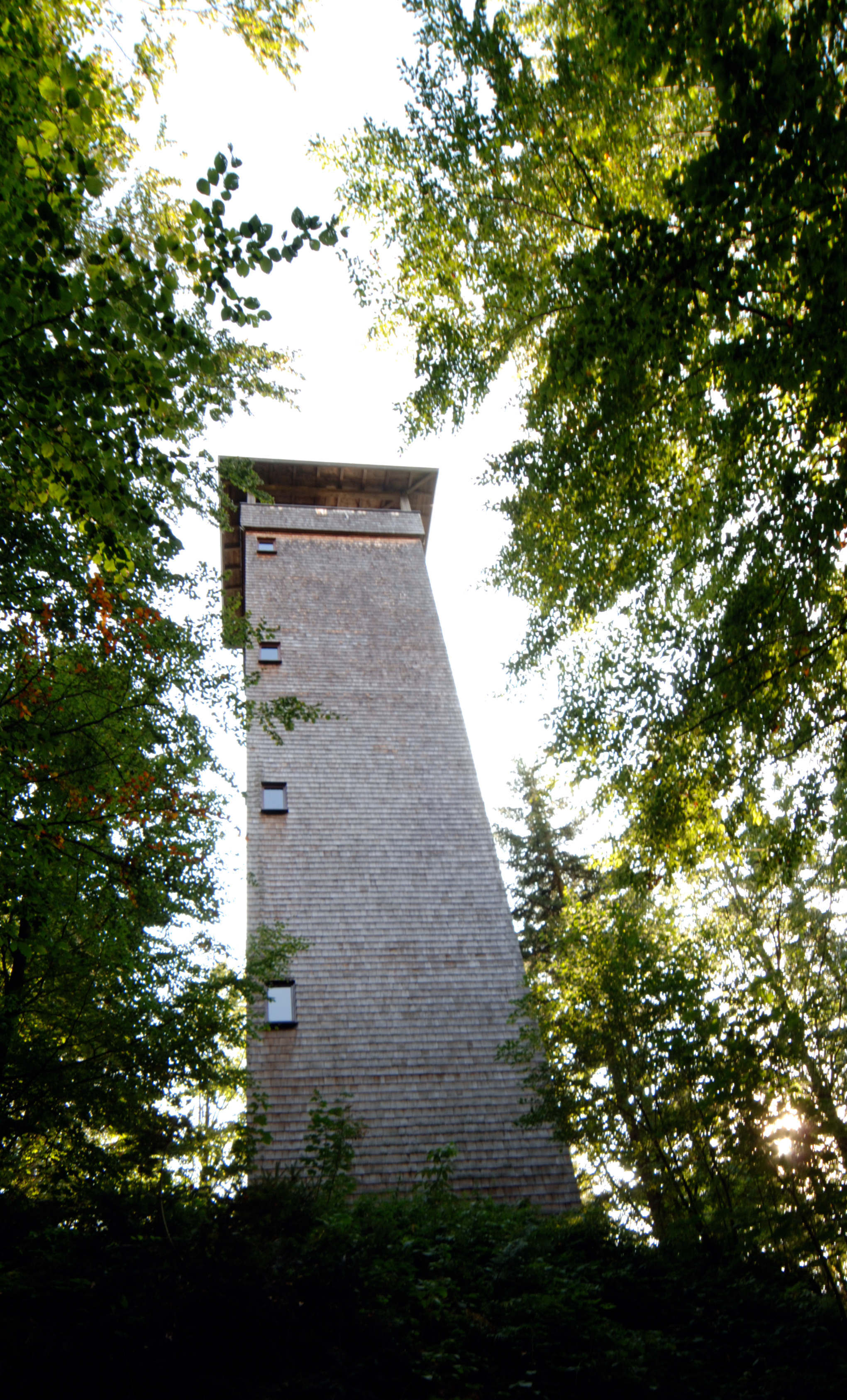 Der weitere Verlauf des Weges führt Sie durch ein Waldstück vorbei an einem abgeschiedenen Anwesen und links weiter. Sie überqueren die Straße in der Nähe des Ortes Wolfertschlag und gelangen auf der Gemeindeverbindungsstraße durch den Ortsteil Holzhammer nach Oberkreuzberg. Am Dorfplatz biegen Sie links bergauf Richtung Kirche. Ein kurzer Abstecher zum Aussichtsturm Oberkreuzberg mit herrlichem Rundblick lohnt sich.