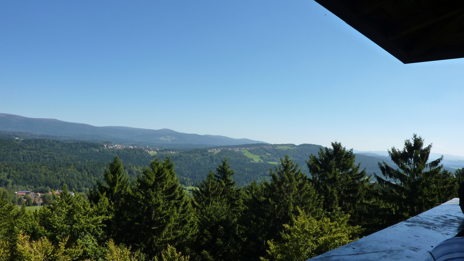 Der Weg führt Sie links nach Langdorf und von hier weiter über die Marienhöhe – schöner Blick Richtung Steinklamm – nach Spiegelau.
