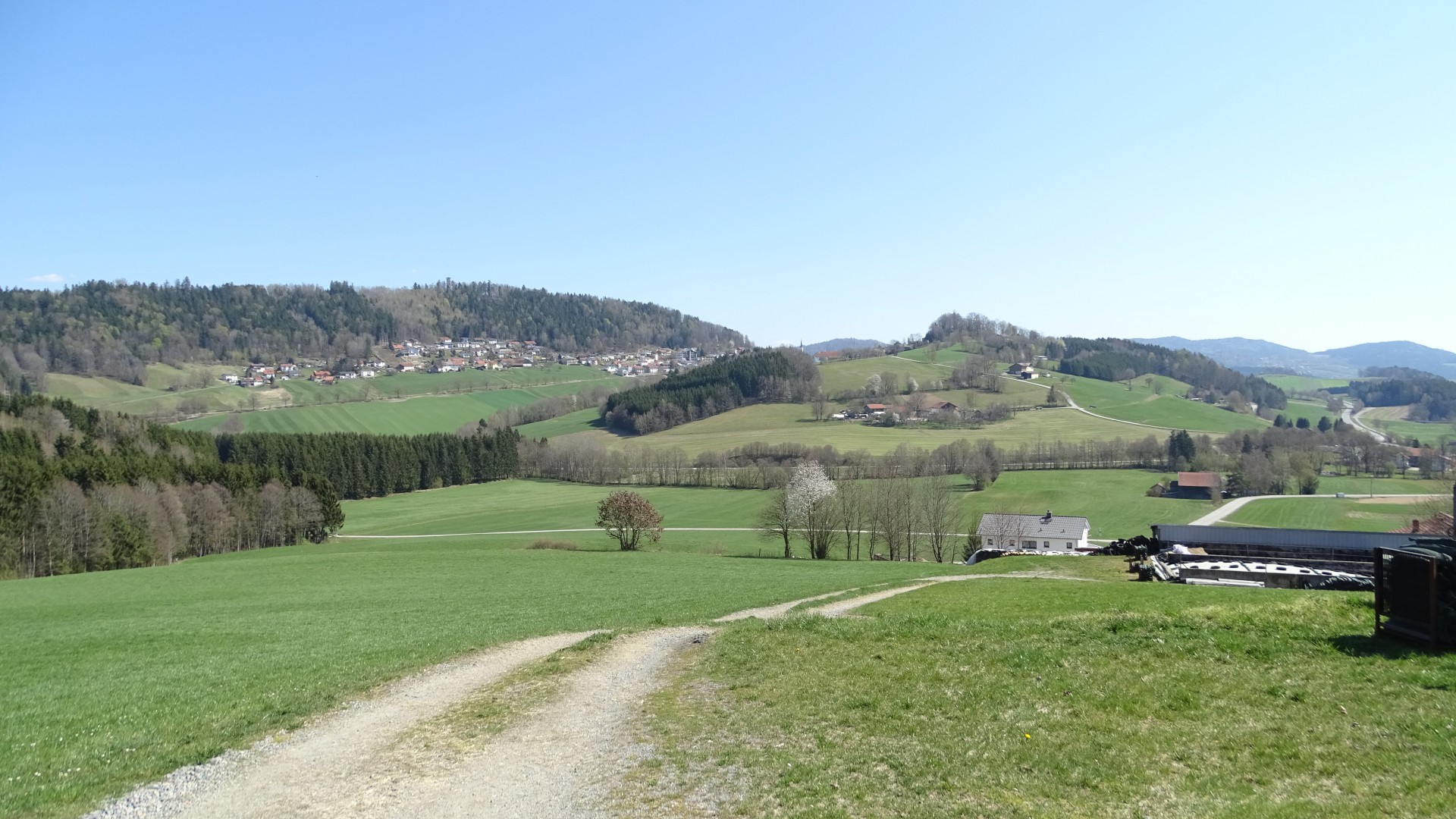 hier haben Sie wunderschöne Ausblicke über das Tal und Richtung Rammelsberg und Schönberg. In der Ortschaft gehen Sie scharf links die Straße weiter bergab. Nach wenigen hundert Metern kommen Sie zu einer Abzweigung und folgen dann links den Fuß-
