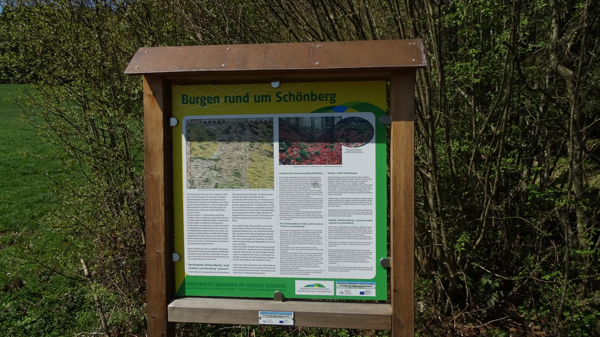 bis Sie an einem Jagdsitz kommen. Hier gabelt sich der Weg. Folgen SIe dem Weg links weiter und erreichen nach wenigen Meter die Infotafel zu dem verlassenen Dorf Glotzing. Leider gibt es hier nur noch wenige Maueerester. Auch ein Bienenhaus steht