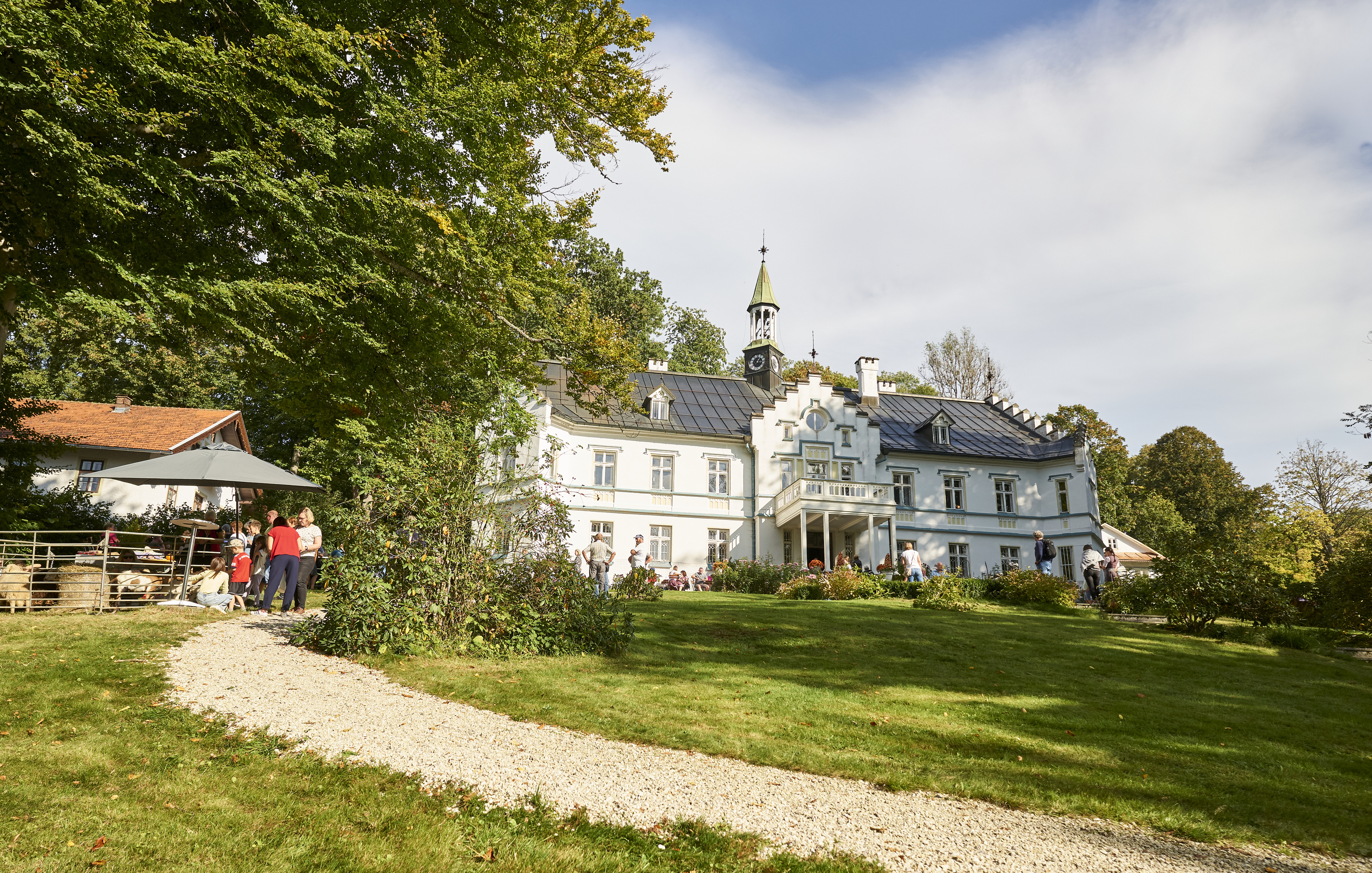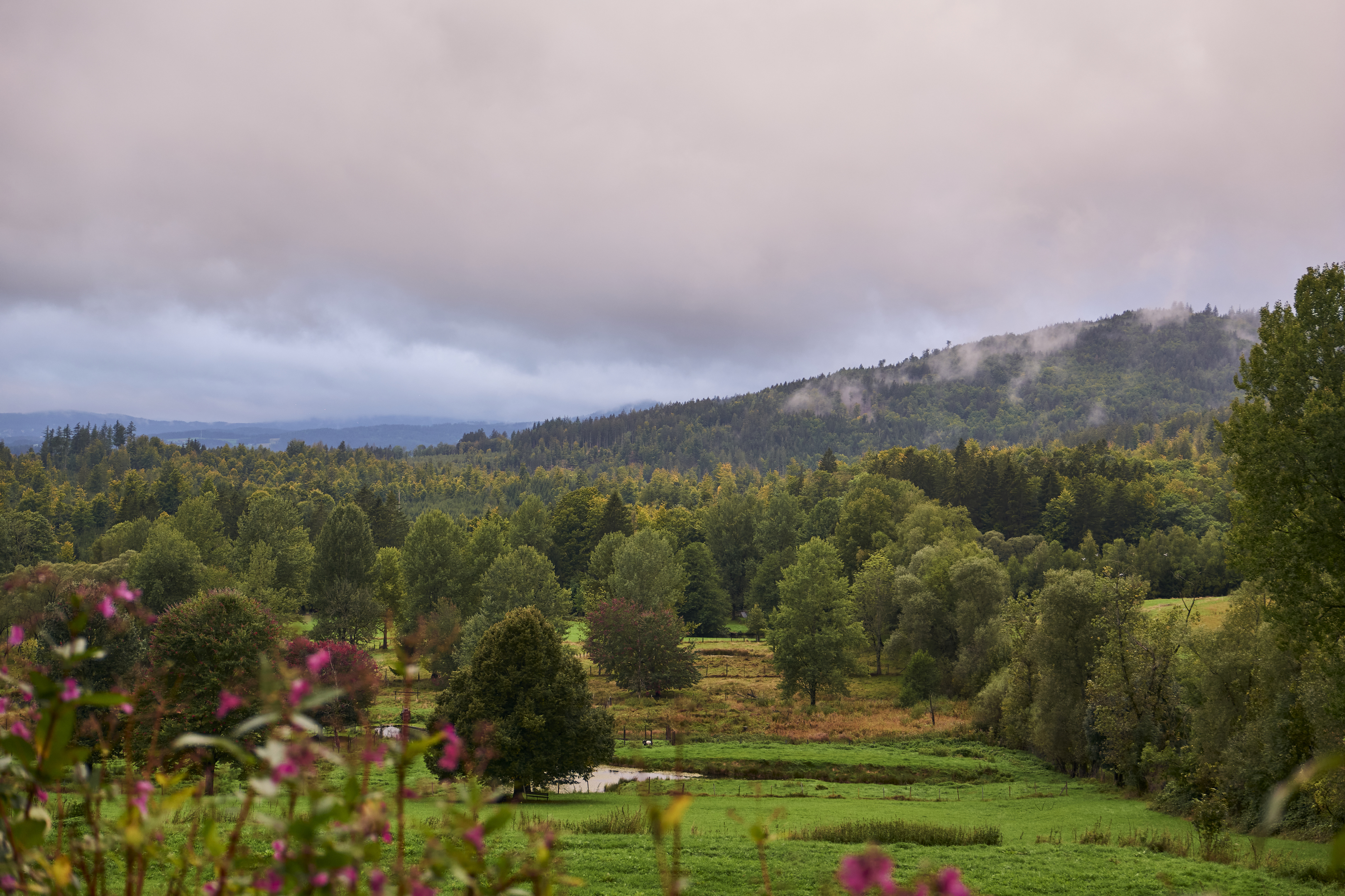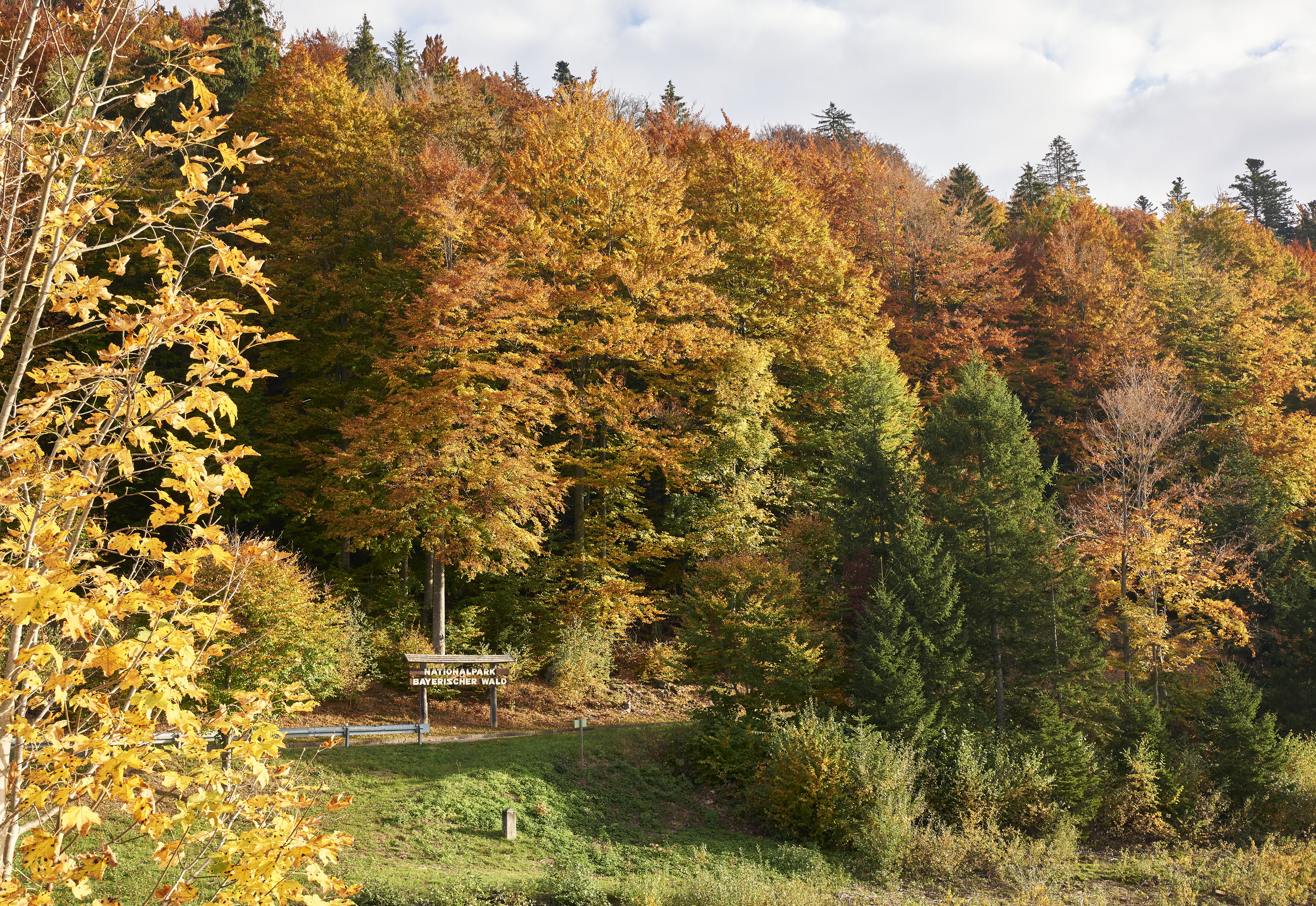 Die Wanderung startet beim Parkplatz Trinkwassertalsperre in Frauenau. Wir folgen der Markierung rote 5. Vorbei am Infohäuschen geht es nach links zur Holzbrücke über den Regen.