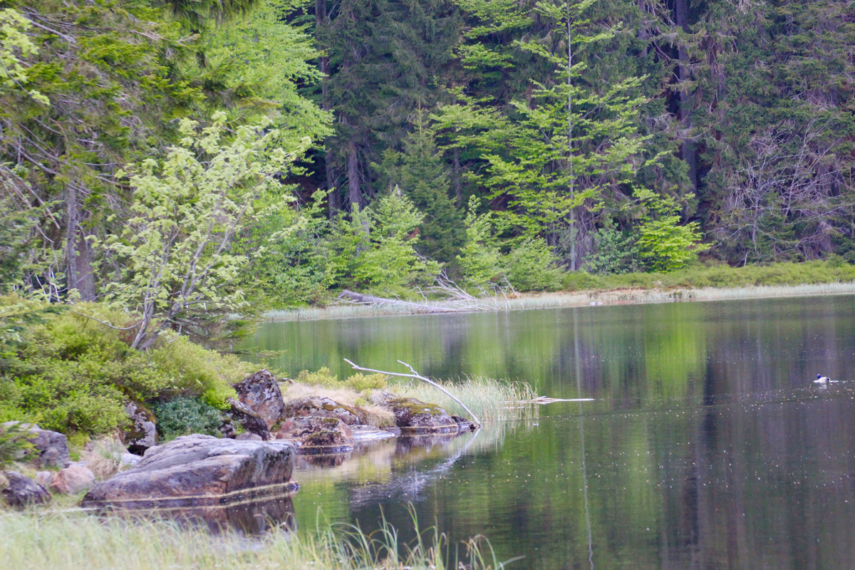 Der höchste Gipfel im Nationalpark Bayerischer Wald erhebt sich mächtig über dem Rachelsee. Die urigen Wälder rund um den 1453 Meter hohen Rachel galten von je her als geheimnisvoll. Vielleicht ist gerade deshalb der Große Rachel mit seinem sagenumwobenen See schon immer ein beliebtes Ausflugsziel für viele Naturfreunde. Nach zahlreichen Windwürfen und Borkenkäferbefall entwickelt sich ein vollkommen neues Waldbild: Inmitten der stehenden und liegenden Baumstämme wachsen junge Fichten, Vogelbeeren und vereinzelt Berg-Ahorne nach.(Quelle: Nationalpark Bayerischer Wald)